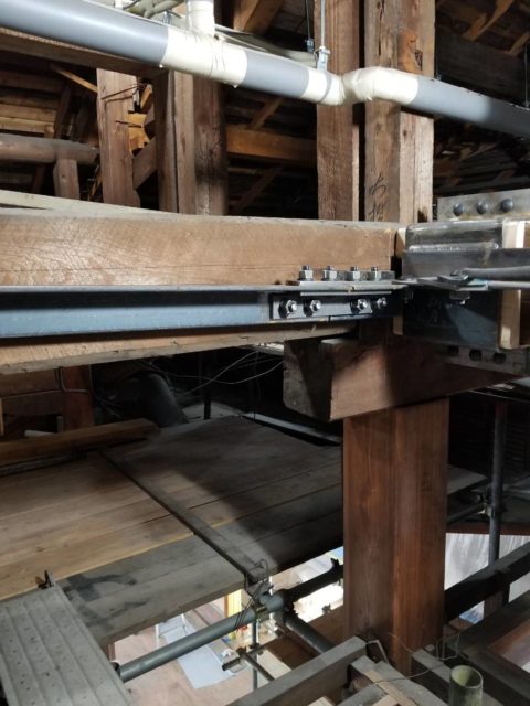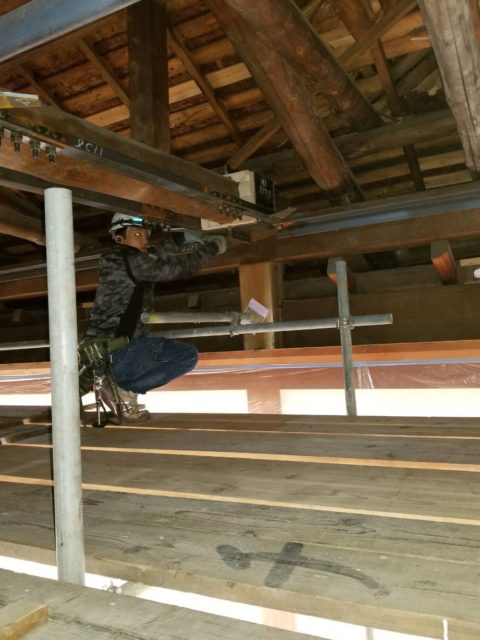 景観を保つため、天井の裏の屋根の骨組みを補強しました。